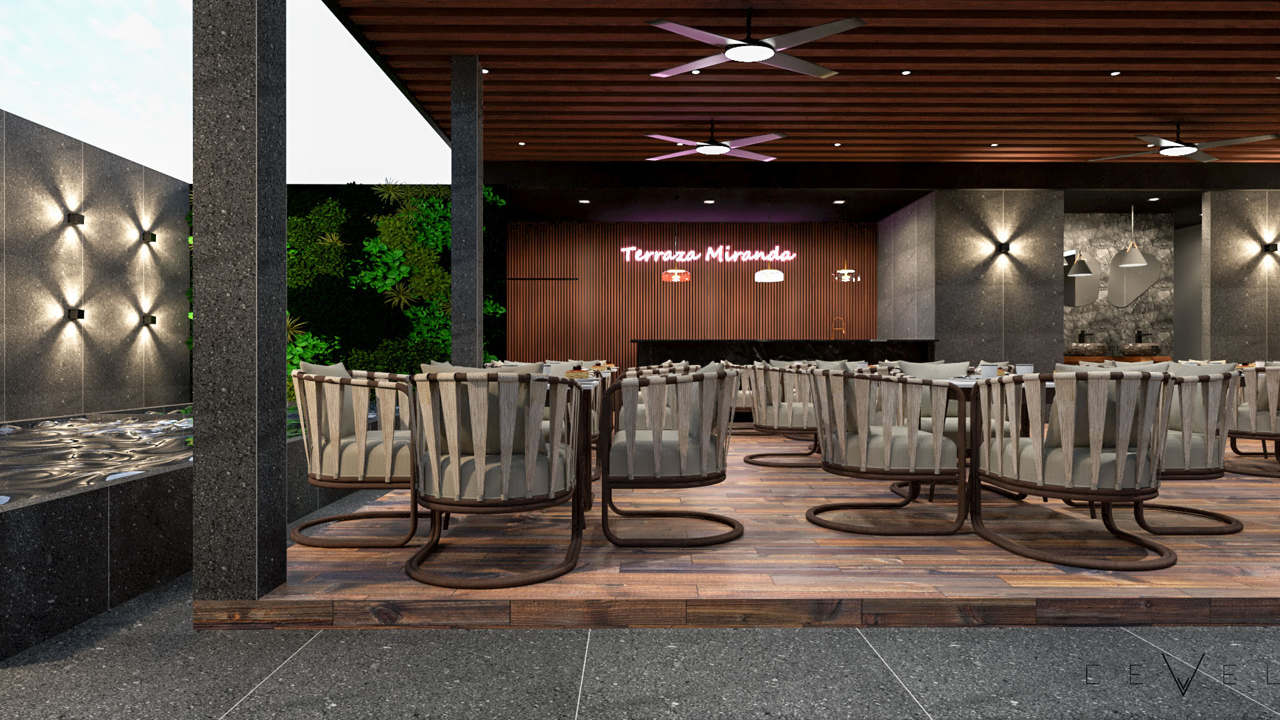 Terraza Miranda es un espacio dirigido a eventos sociales en la ciudad de Los Mochis, nuestro cliente buscaba algo de fácil mantenimiento y elegancia atemporal con la ayuda de elementos naturales como la piedra y la madera.